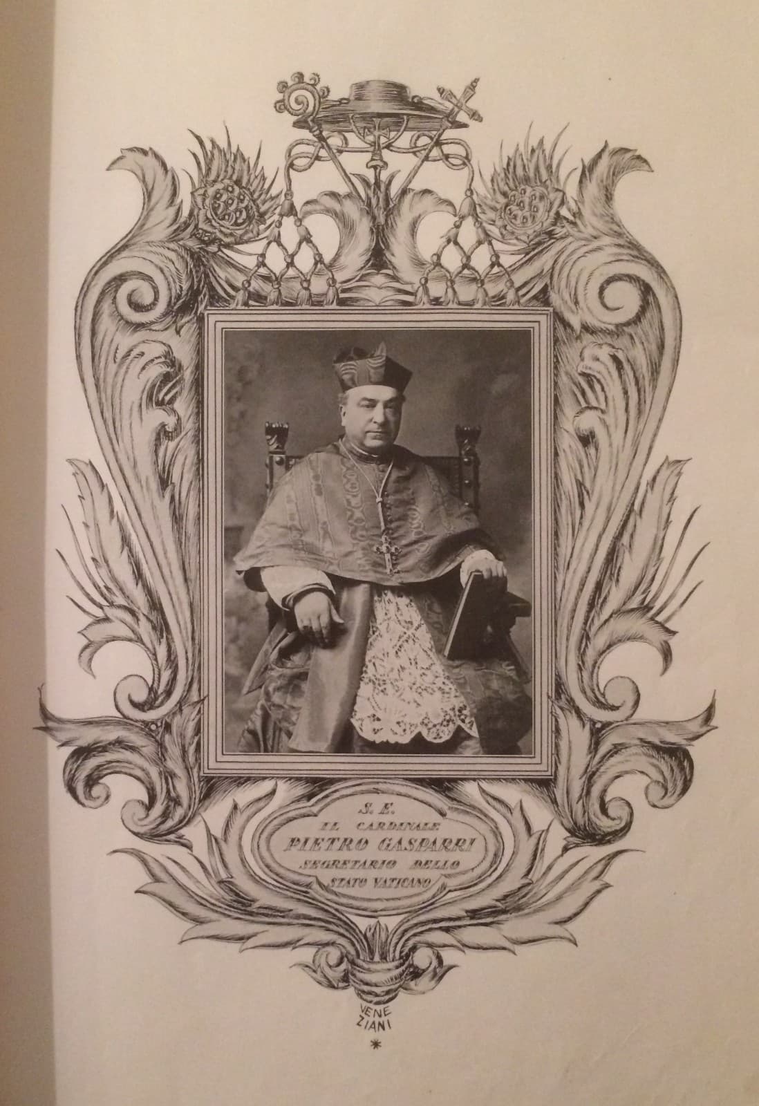 Cardinal Pietro Gasparri: Ritratto d'Epoca Con Fregi Araldici E Illustrazioni Di Veneziani, 1930 Circa