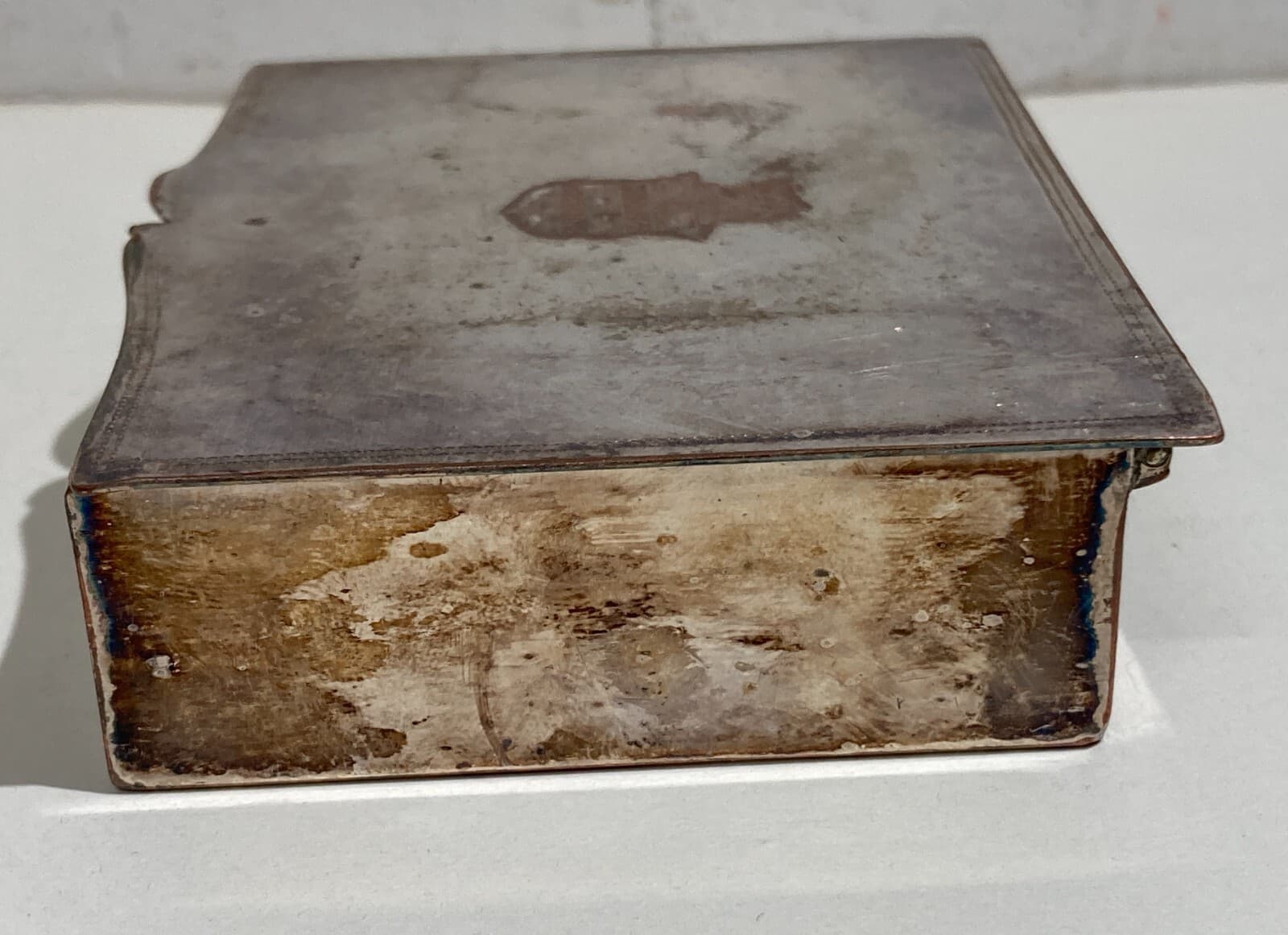 Araldica: Astuccio Decorativo Con Stemma Gentilizio In Metallo Argentato