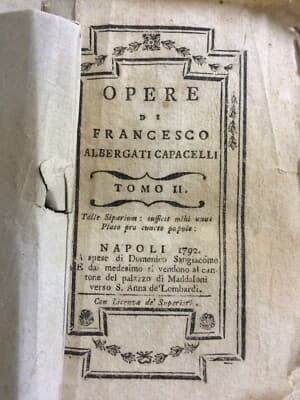 Francesco Albergati Capacelli: Opere, Tomo II (La Tarantola, Nadir) 1792