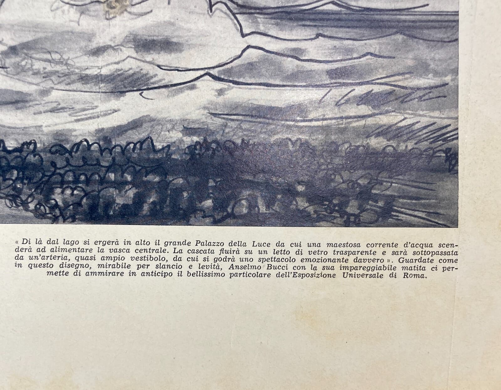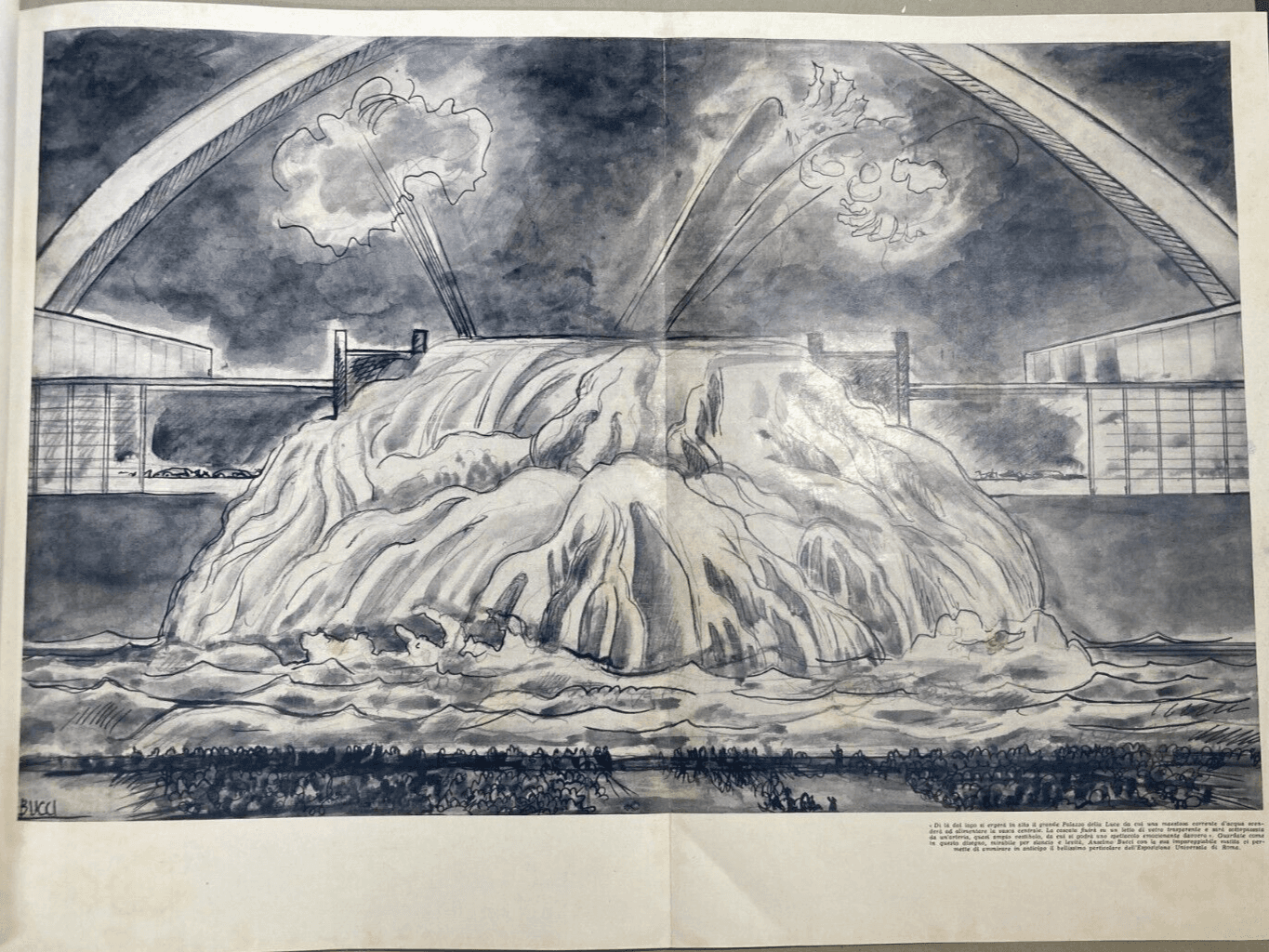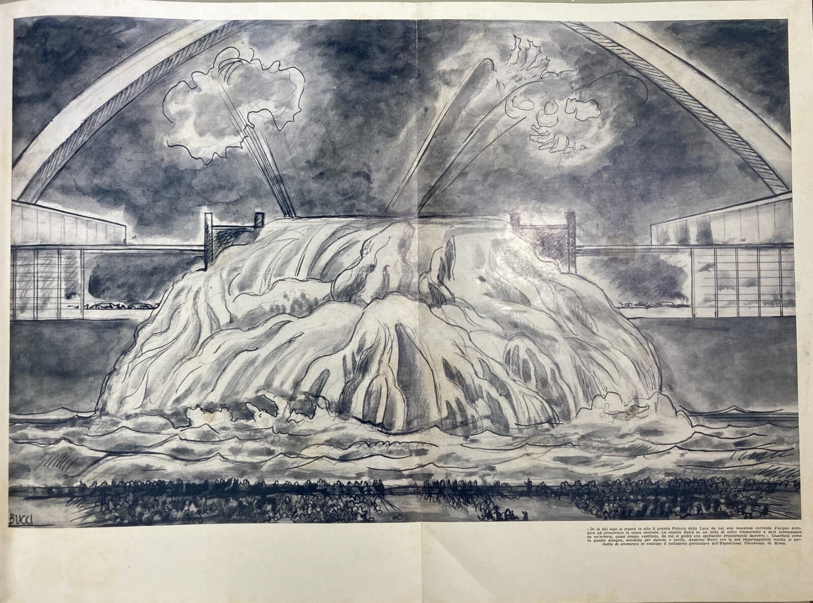 Roma, Esposizione Universale 1943, Palazzo Della Luce E Cascata, Disegno Di Anselmo Bucci