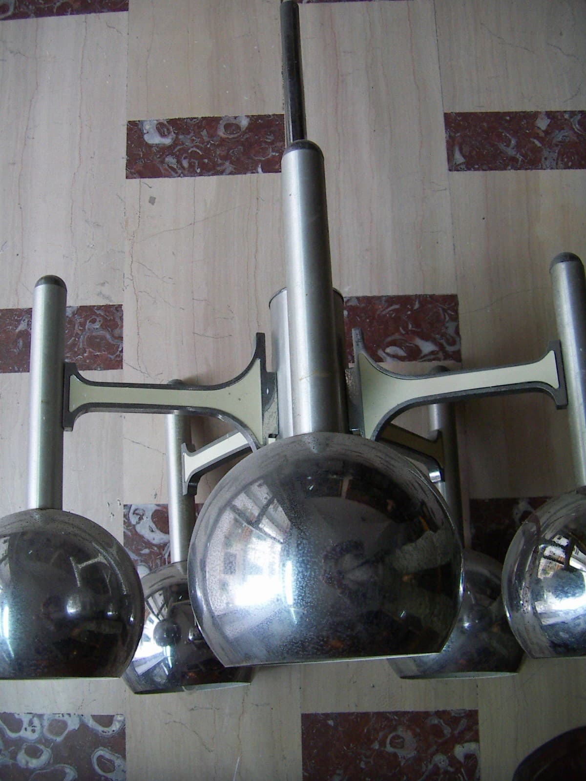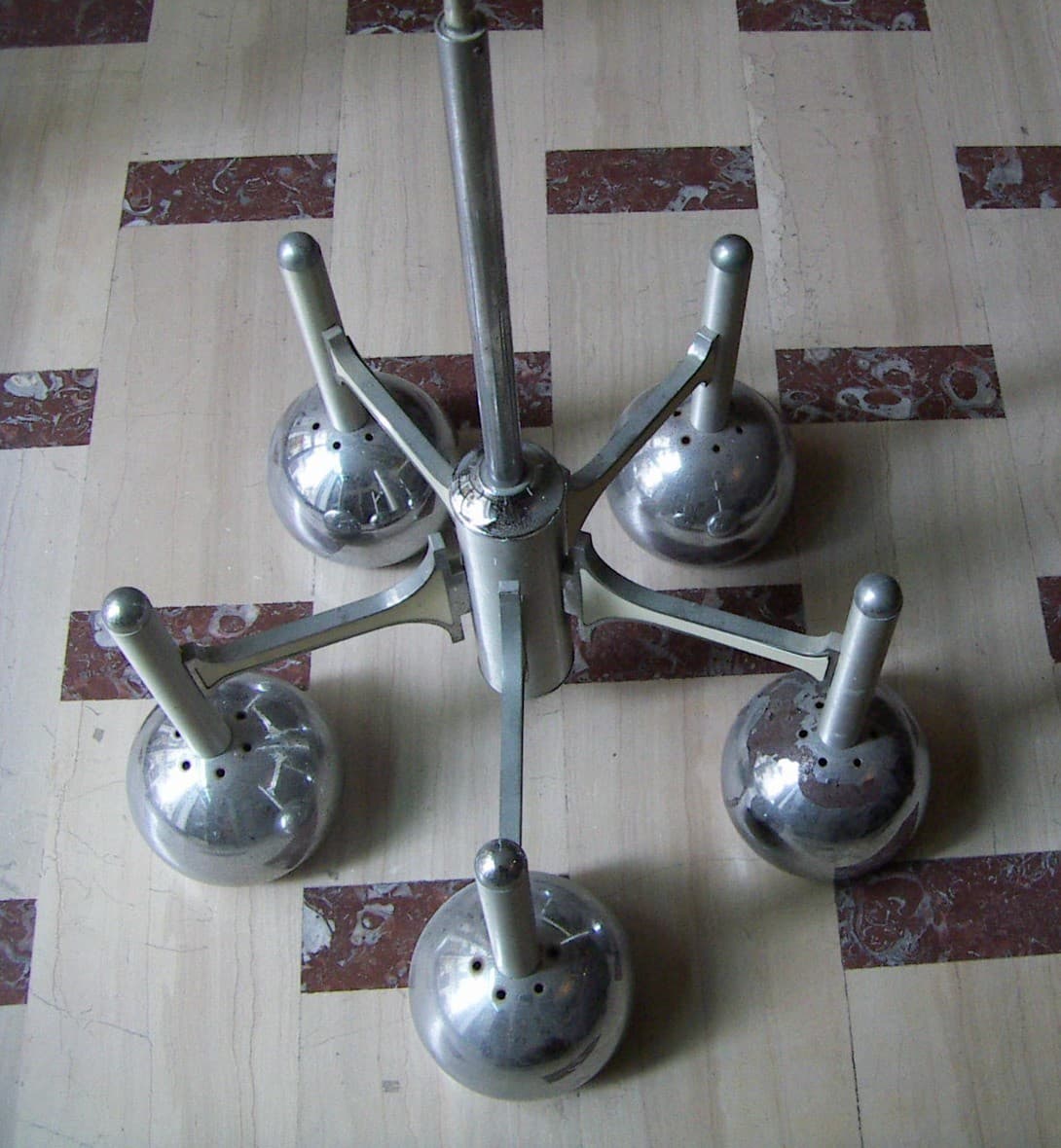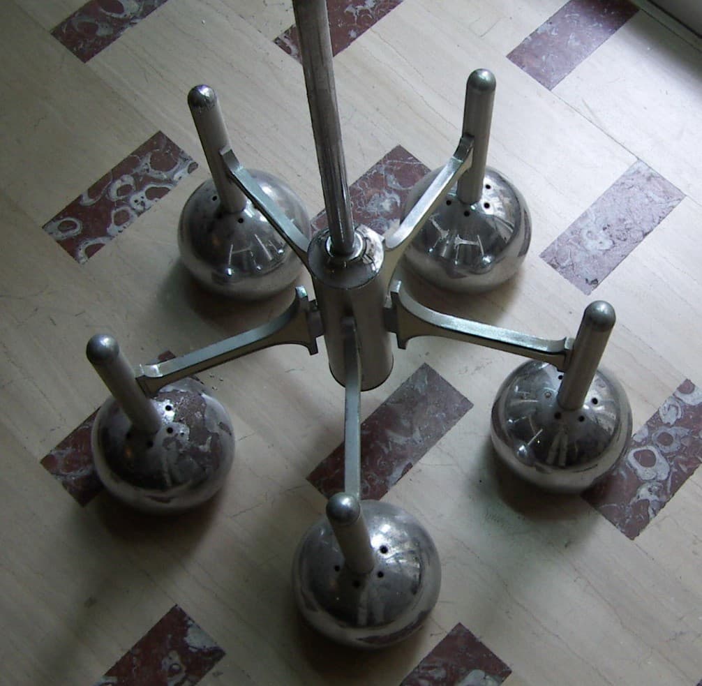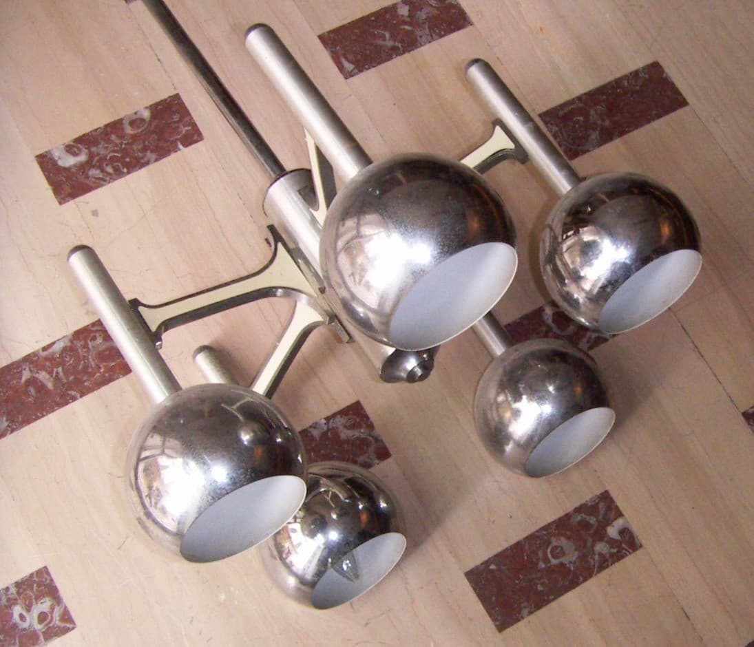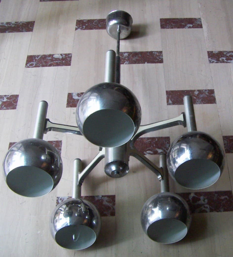 Lampadario Di Design Modernariato Anni '70 In Metallo Cromato, Da Restaurare
