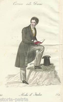 Moda Maschile Del Primo Ottocento, Scrittore O Viaggiatore In Abito Elegante, Incisione All'Acquaforte Originale, 1823