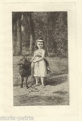 Bella Antica Incisione Originale, Scena Bucolica Con Pastorella E Pecora, Martial