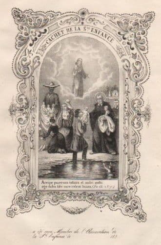 Stampa Litografica Santa Infanzia: Scena Allegorica Francese, 1850 Circa