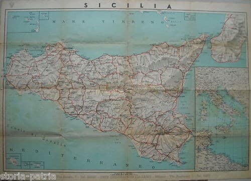 Antica Cartografia: Carta Stradale Di Calabria, Sicilia E Basilicata
