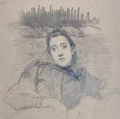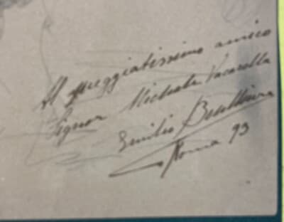 Emilio Benlliure Y Morales: Disegno Originale A Matita Con Dedica Autografa, 1893