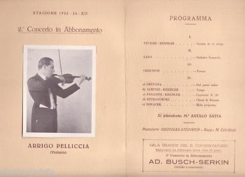 Programma Concerto Arrigo Pelliccia, Napoli 1934