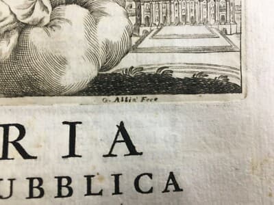 Militaria, Spagna, Antica Allegoria Di San Marco E La Repubblica Veneta, Incisione Del XVIII Secolo