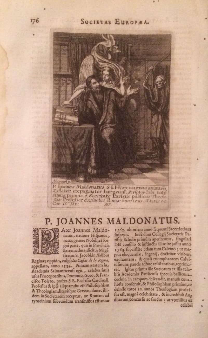 Teologia, Gesuiti Celebri, Spagna: Giovanni Maldonato. Antica Stampa Con Angelo E Libri