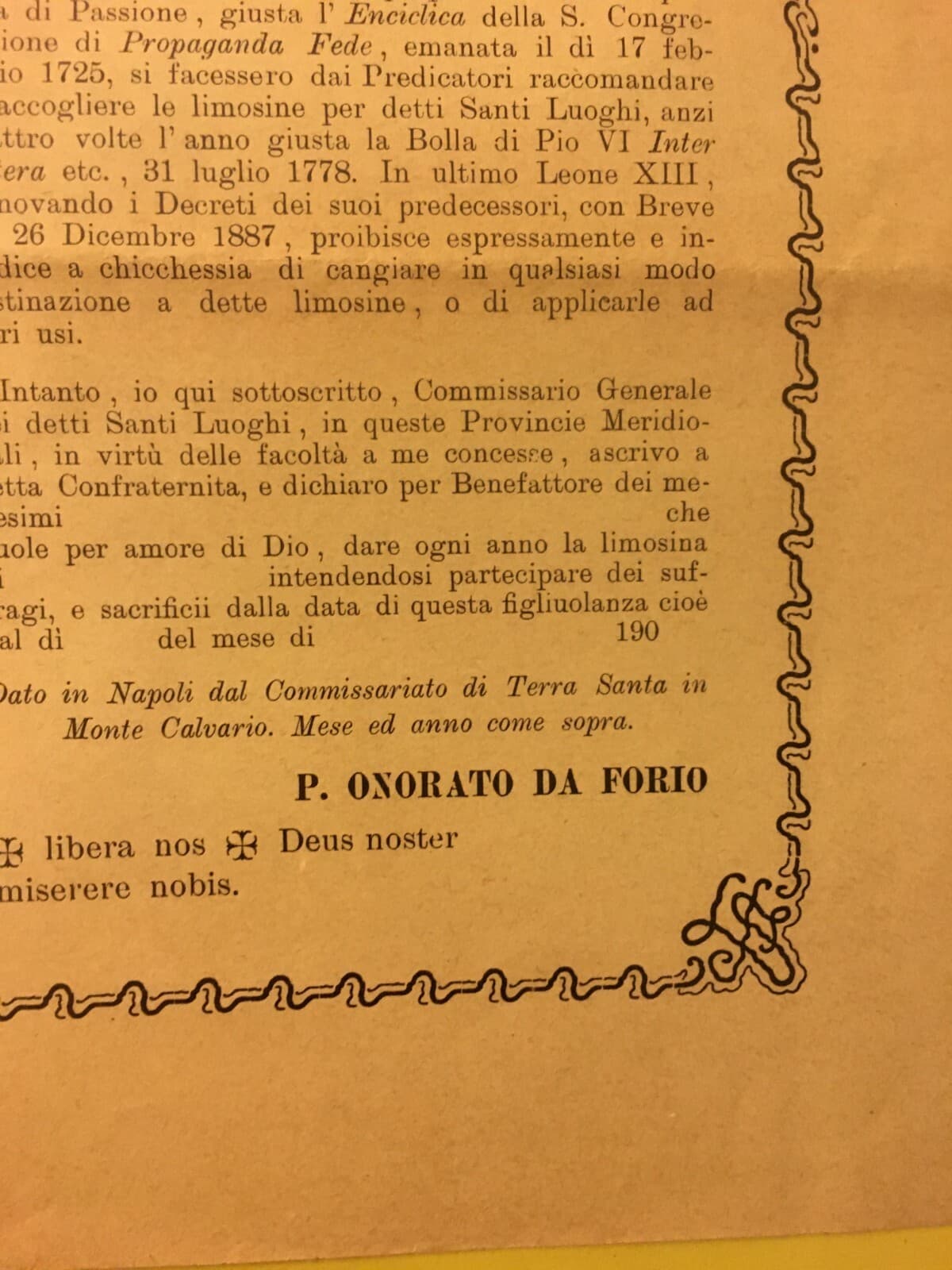 Terra Santa, Gerusalemme, Padre Cherubino Da Forio, Napoli: Manifesto Antico