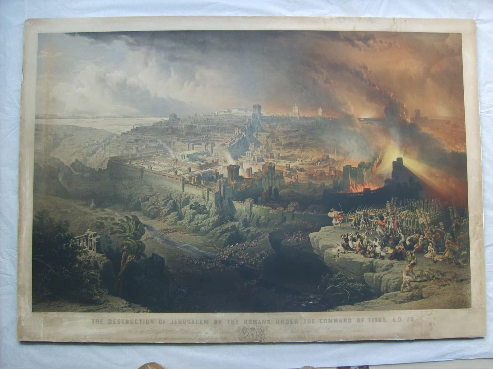 Ebraica, Palestina, Gerusalemme, Assedio, Incendio Roberts, Haghe Litografia