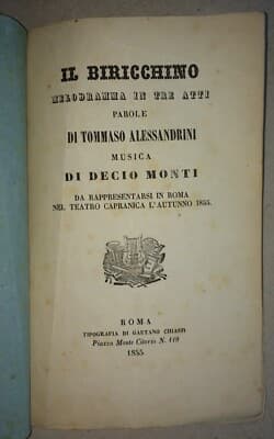 Teatro, Musica E Melodramma: Il Biricchino, Alessandrini, Decio Monti, Teatro Capranica