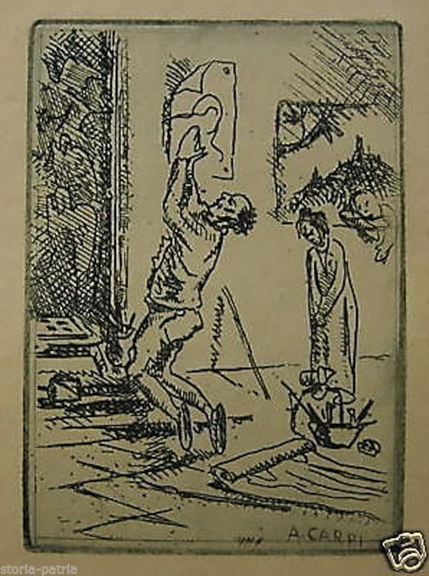 Aldo Carpi, Incisione Acquaforte Originale Scena Devozionale, 1930