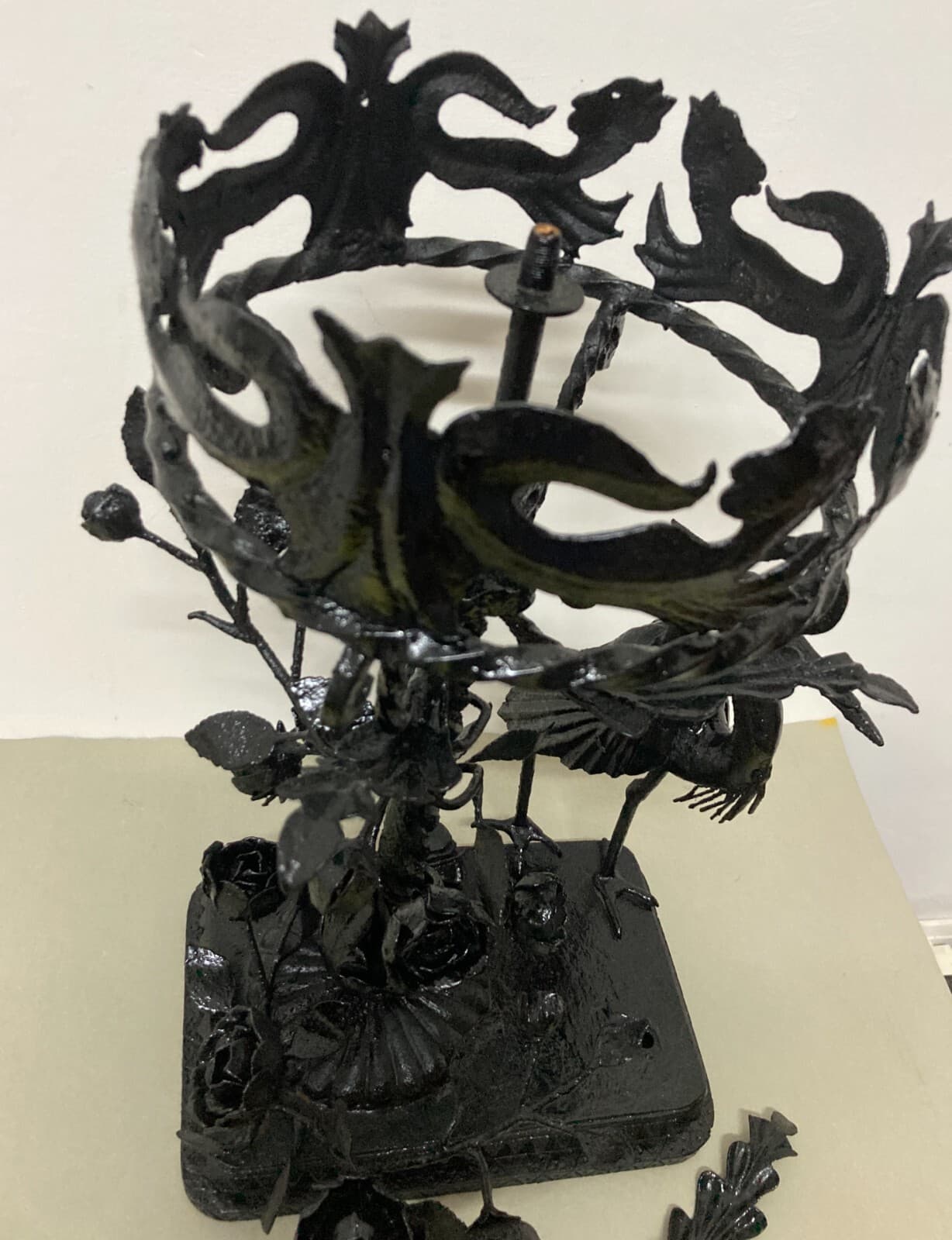 Artistico Soprammobile, Base Per Lampada In Ferro Battuto
