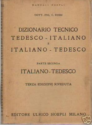Dizionario Tecnico Italiano Tedesco: Chimica E Merceologia. Hoepli, 1952. Rossi C.