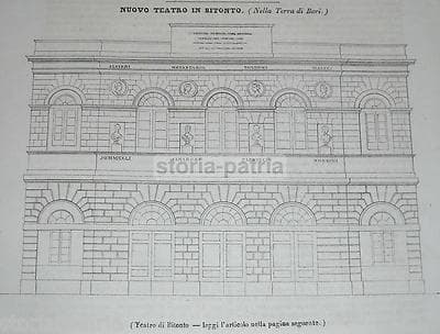 Puglia, Bari, Bitonto: Progetto Architettonico Per Il Nuovo Teatro. Caffarelli, Tauro, Valente. Stampa d'Epoca