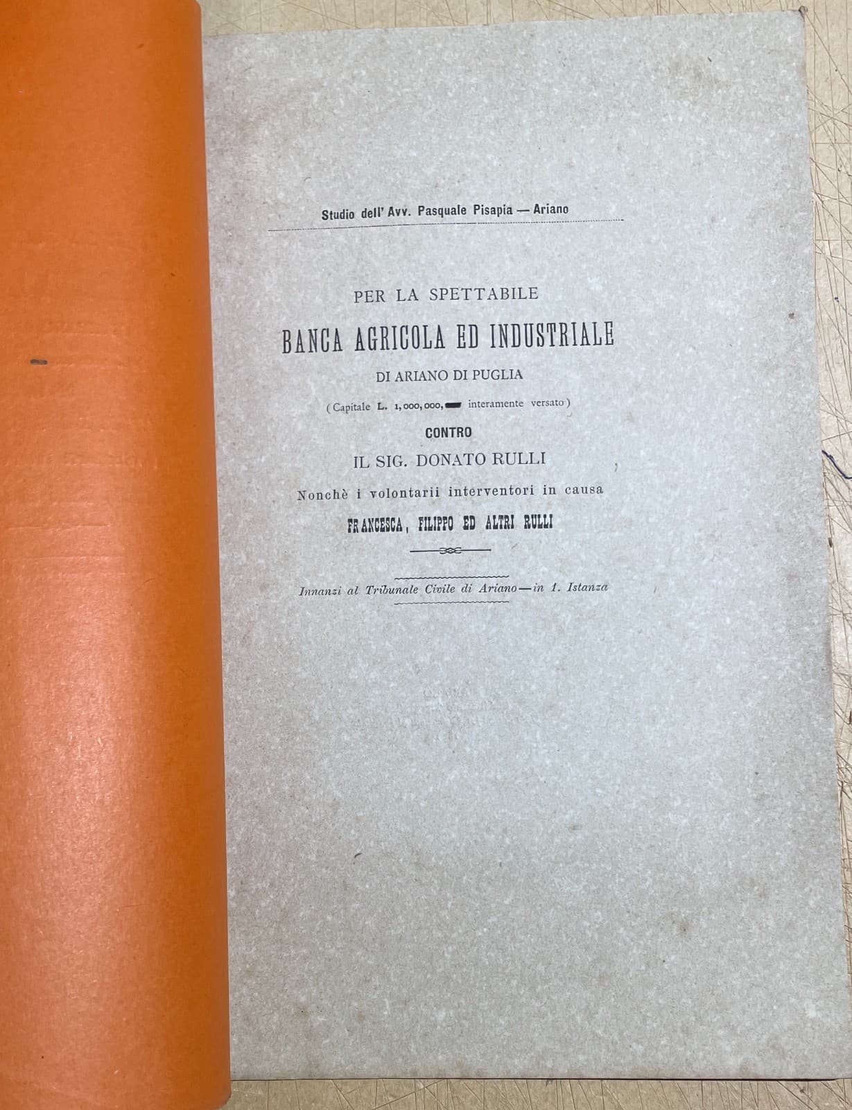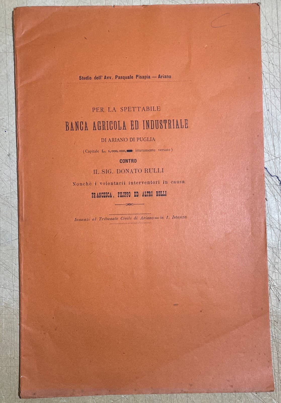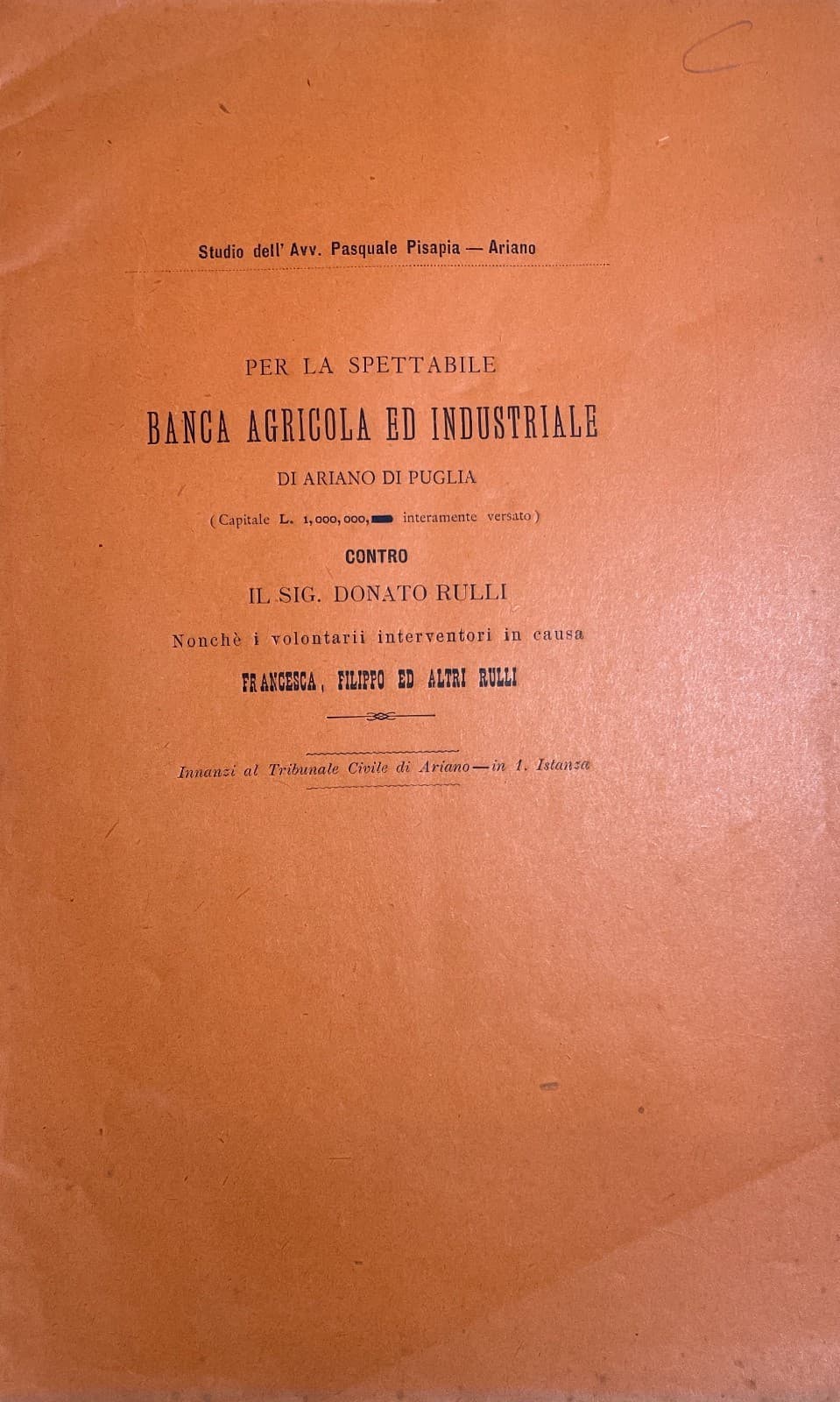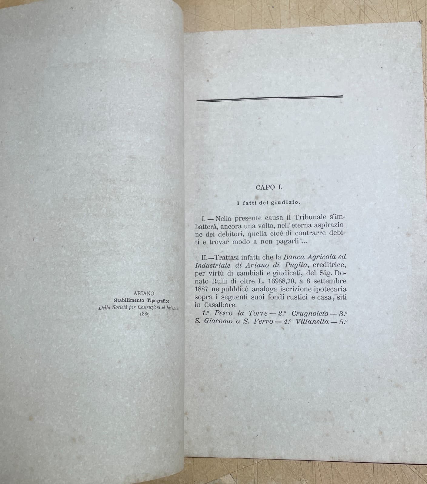Irpinia, Ariano, Casalbore: Giuridica, Economia, Banca Agricola, Rulli, Pisapia, Ciccone