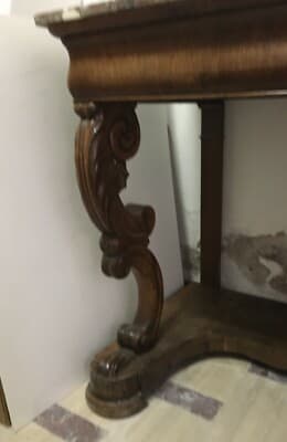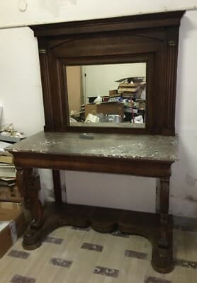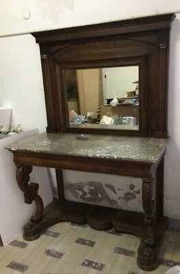 Antica Consolle Da Muro Con Specchiera In Legno Di Noce E Marmo