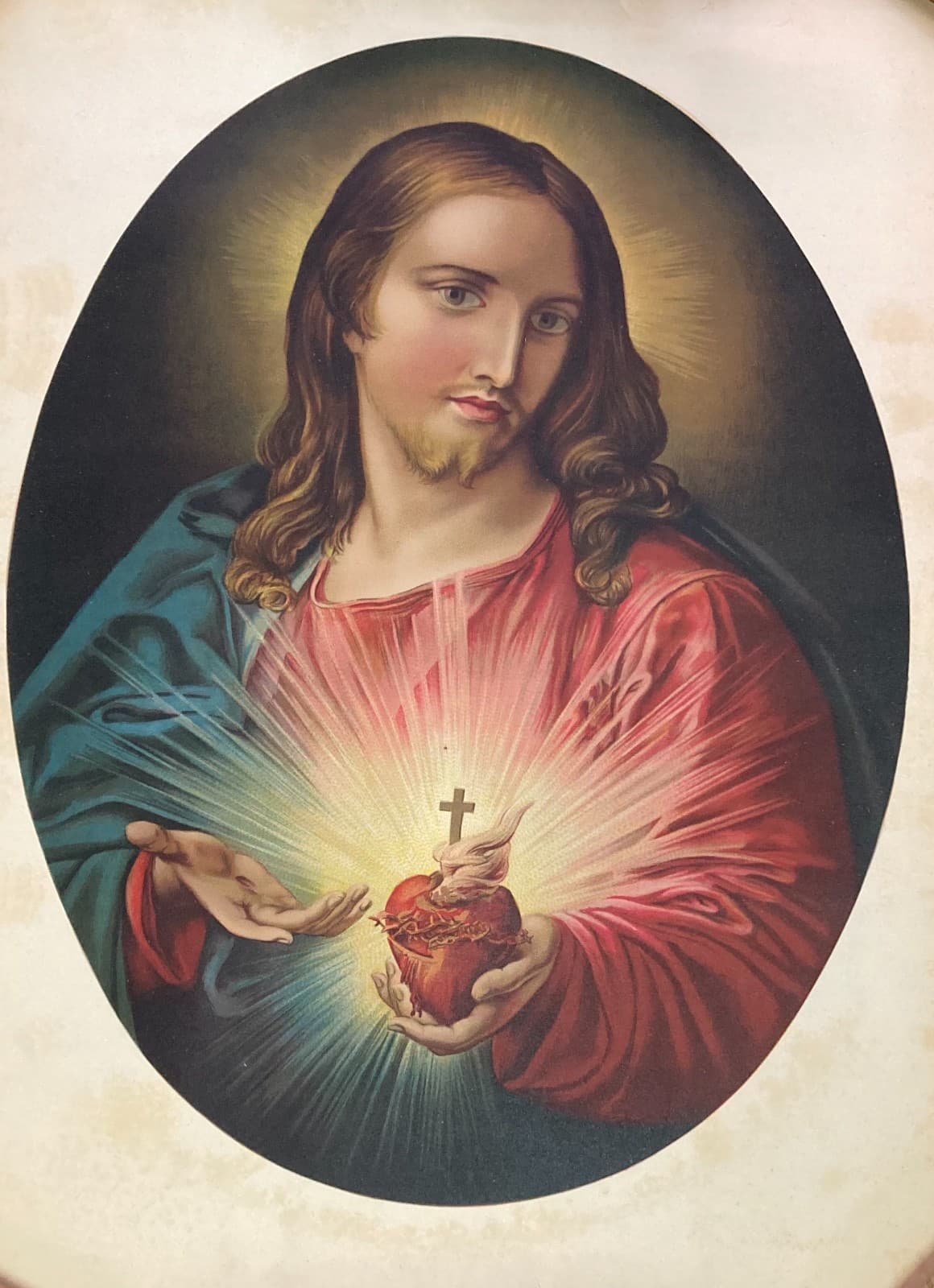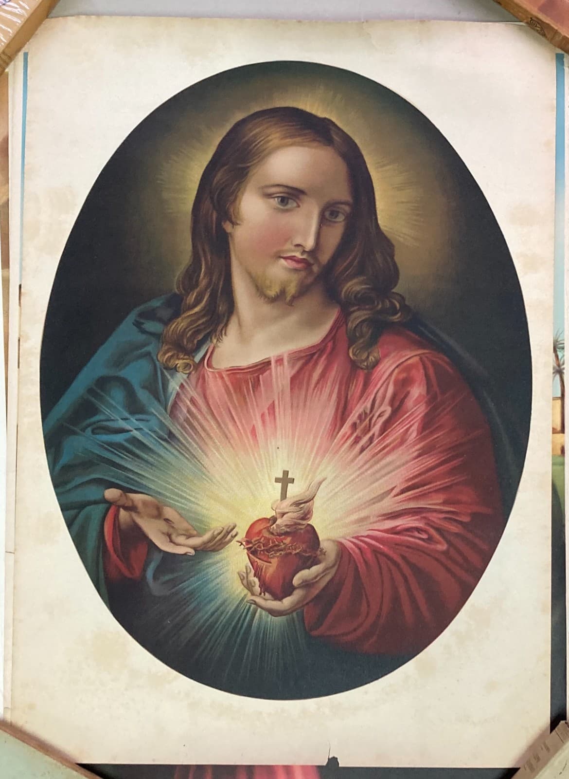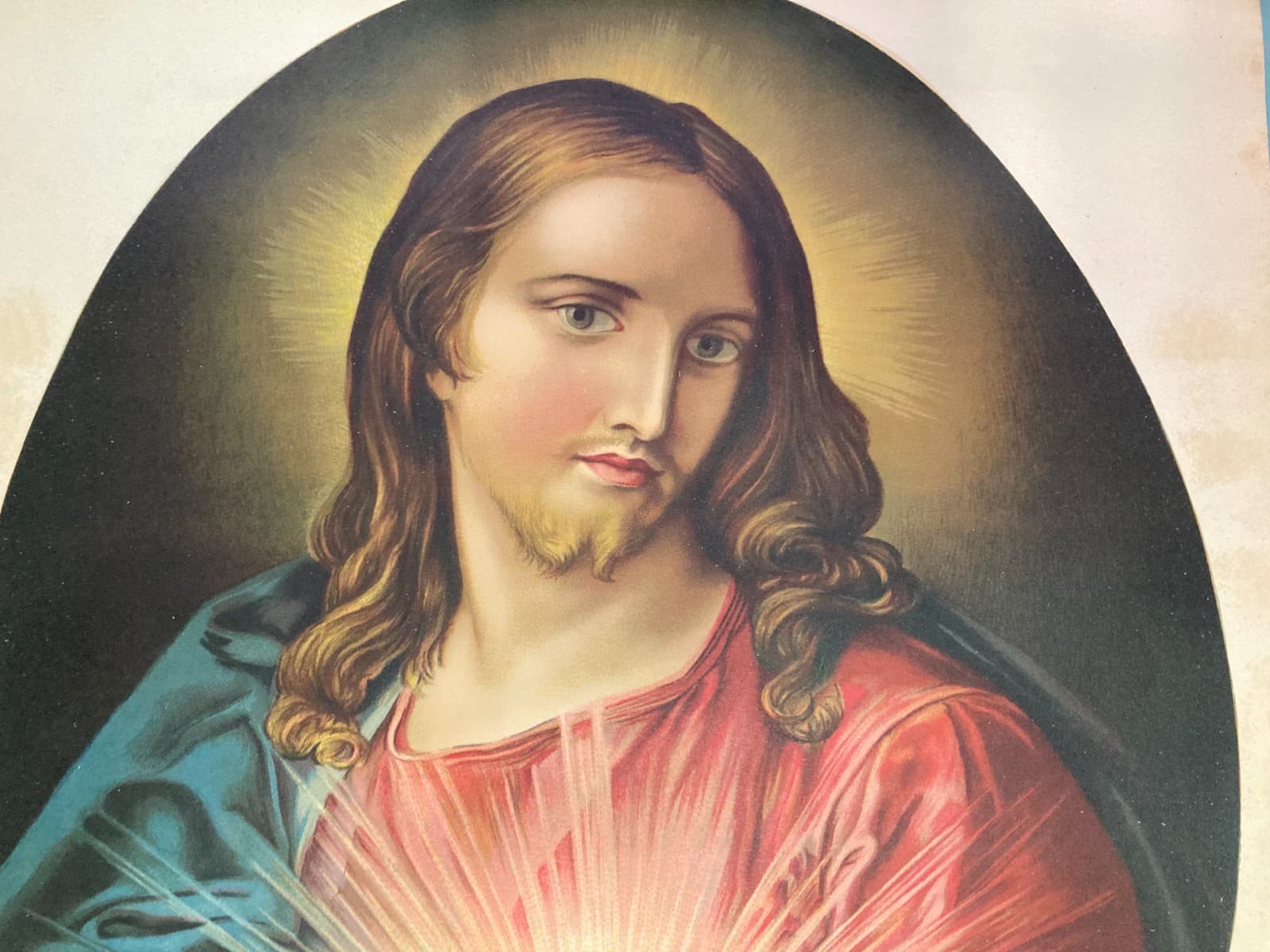 Arte Devozionale: Grande Stampa A Colori Del Cuore Di Gesù, XX Secolo