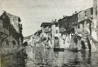 Veneto, Verona, Arte: L'Adigetto, Stampa Antica Dell'Artista Rubens Santoro, 1884