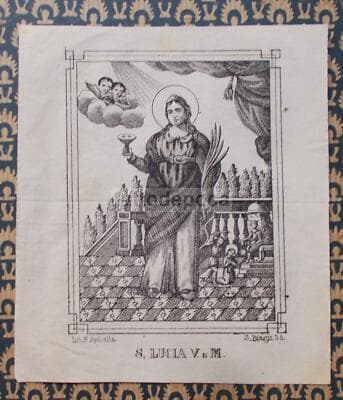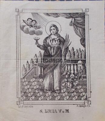 Antica Stampa Popolare Devozionale Di Santa Lucia, Protettrice Della Vista
