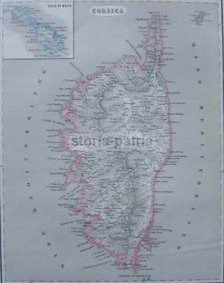 Corsica, Capraia, Antica Cartografia Pagnoni, Mappa Decorativa Con Isole Di Malta