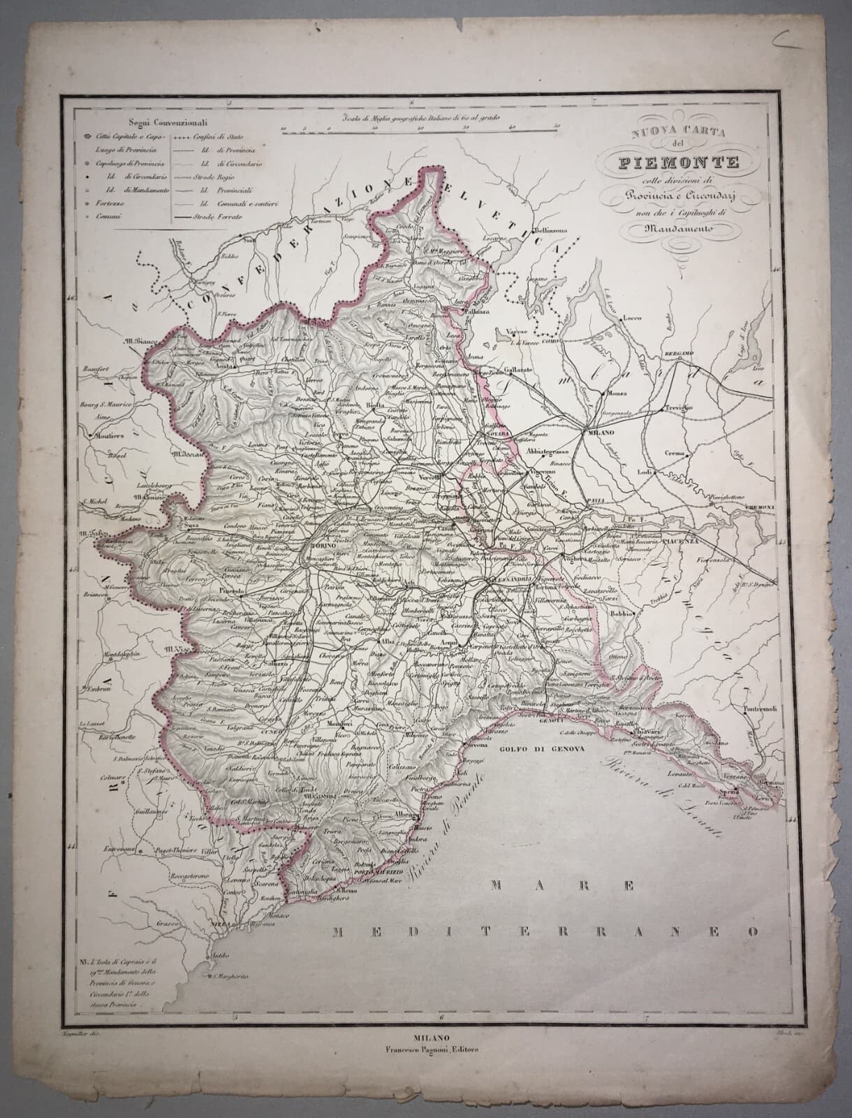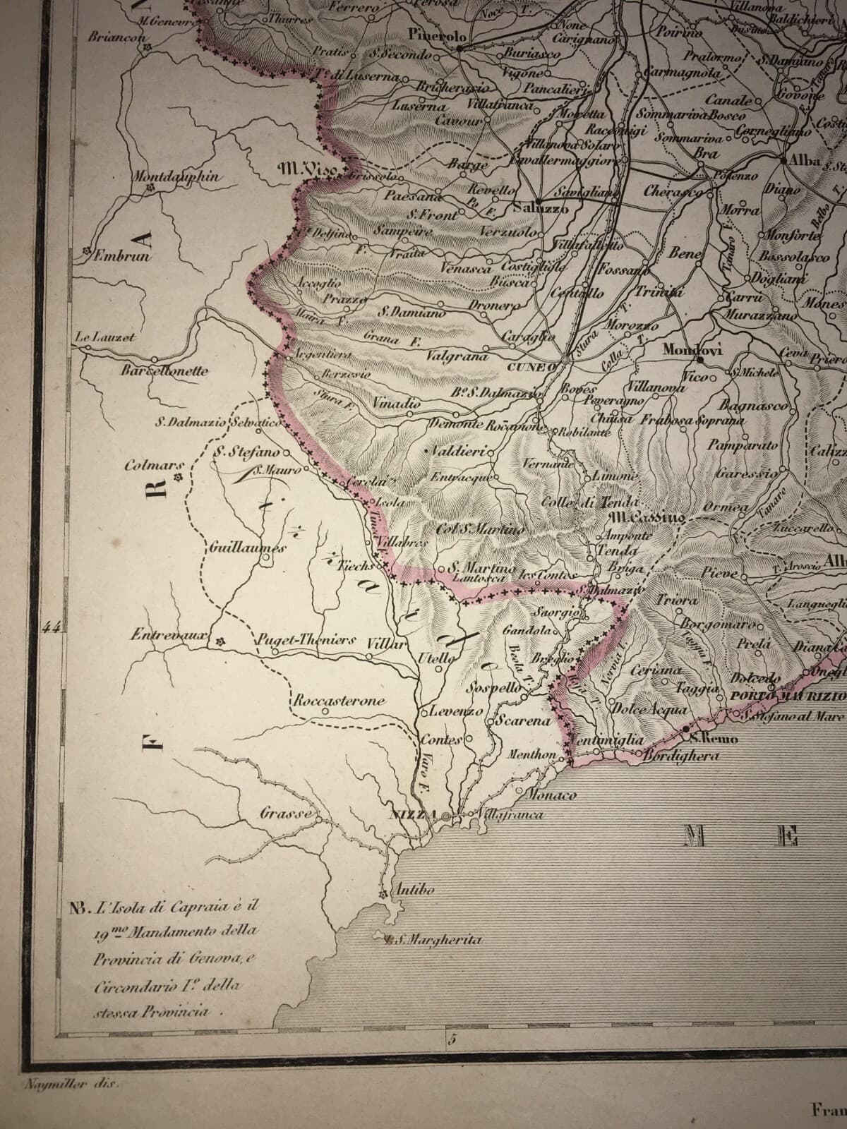 Piemonte Liguria, Antica Cartografia. Allodi, Naymiller, Edizione Pagnoni, Metà '800