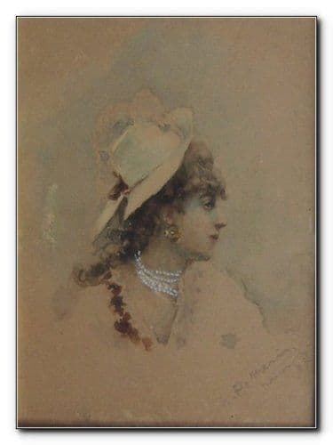 Acquerello De Maria, Napoli 1887. Ritratto Di Signora Dell'Ottocento