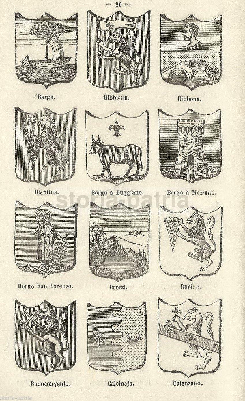 Toscana, Araldica, Stemmi Araldici Municipali, Allegorie, Bibbiena, Orbetello, Asciano