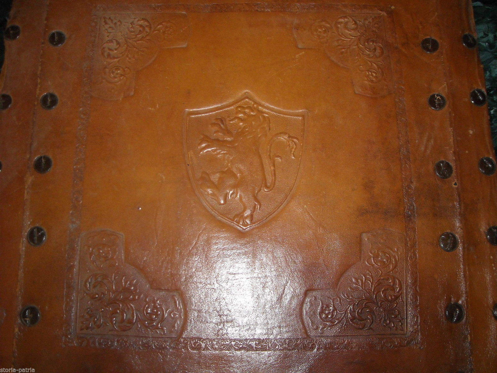 Artigianato Delle Pelle, Araldica, Interessante Pannello Decorato, Utile, d'Epoca
