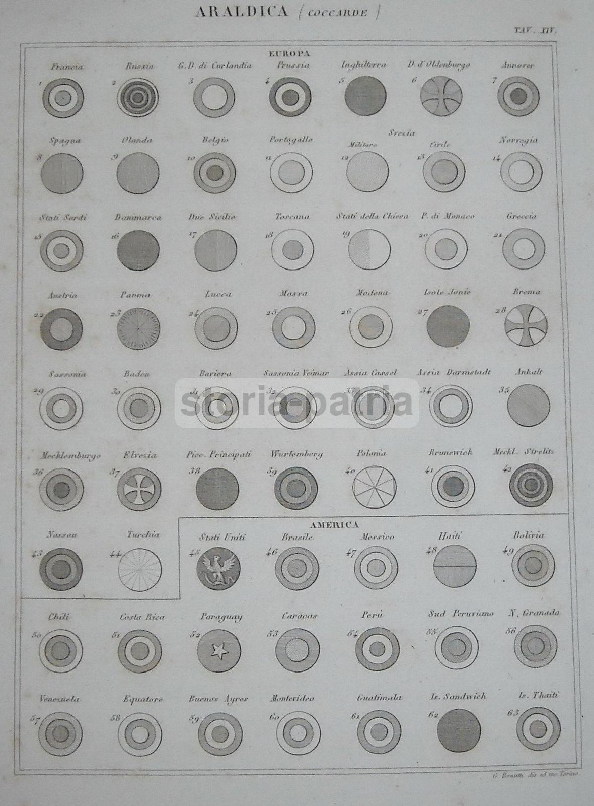 Artista Incisore Bonatti, Torino, Araldica, Antiche Coccarde, America, Europa, Russia
