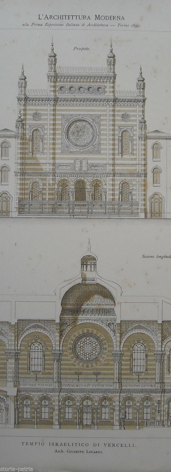 Piemonte, Vercelli, Ebraismo, Ebrei, Architettura, Tempio, Arch Locarni, 1890, Progetti
