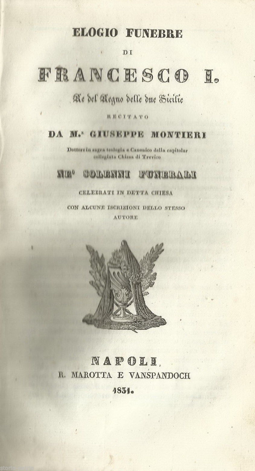 Borboni, Francesco I, Napoli, Trevico, Montieri, Antico Necrologio, 1831, Epigrafi