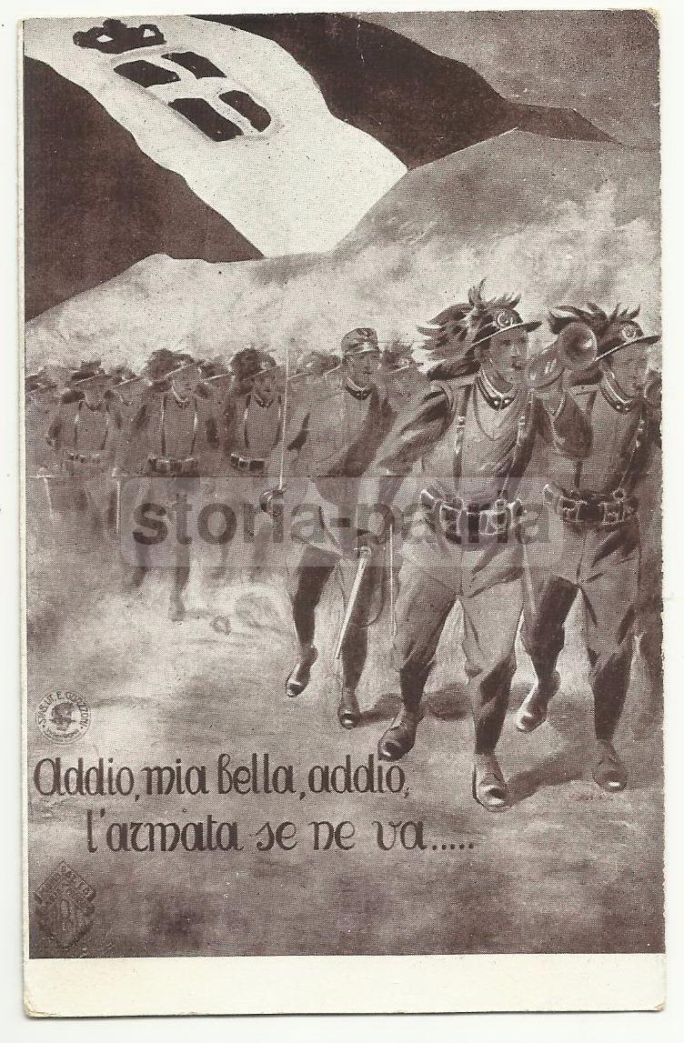 Militaria, Grande Guerra, Bersaglieri, Araldica, Bandiera Tricolore, Cartolina Antica