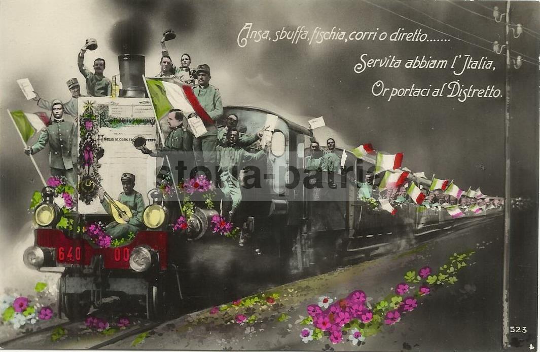 Militaria, Grande Guerra, Ferrovia, Treno Con Militari In Congedo, Rientro In Patria