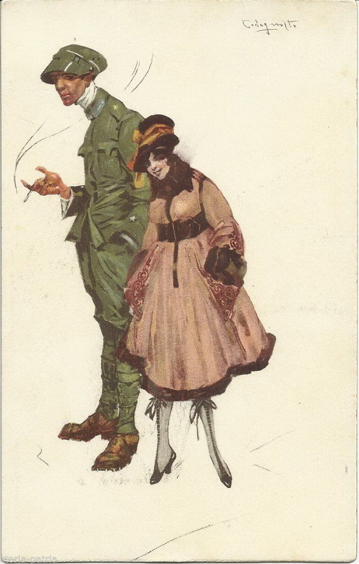 Militaria, Grande Guerra, Illustratori Celebri, Codognato, Donnina Con Militare, 900