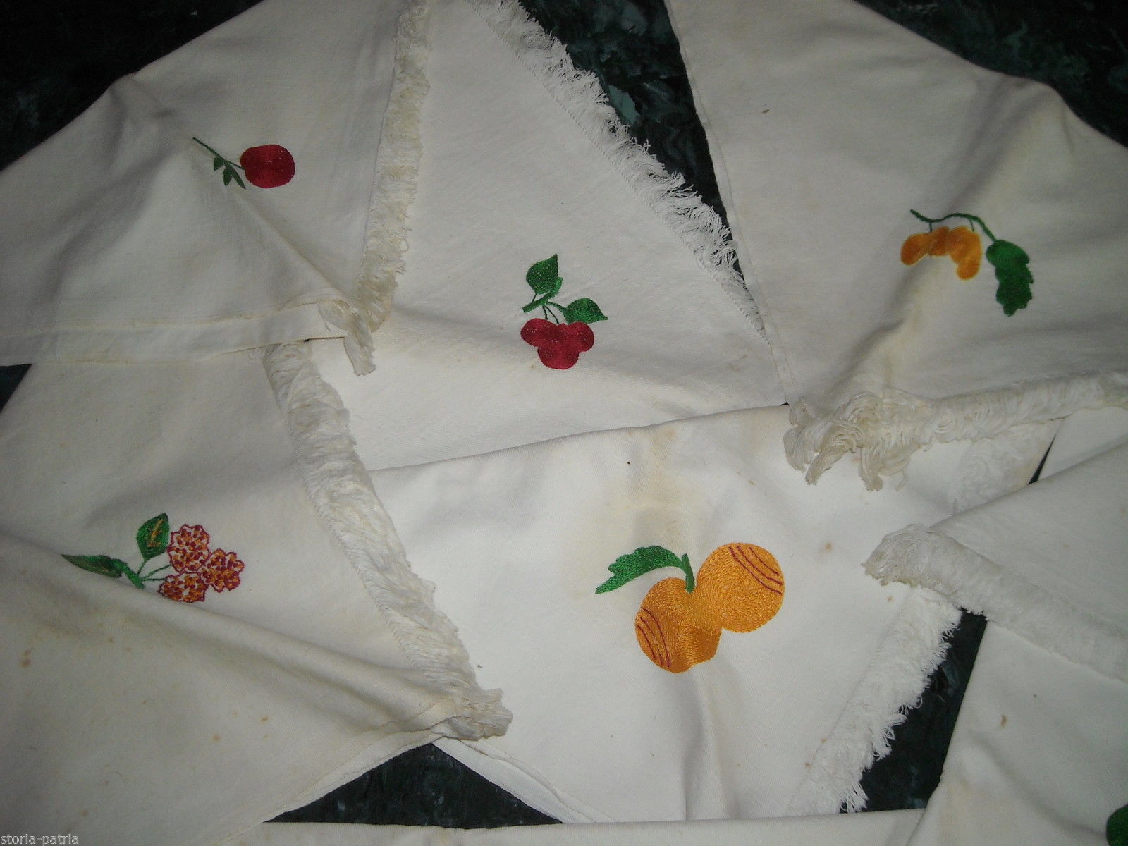 Tessuti d'Epoca, Decorativi Tovaglioli, Ricami Con Frutta, Utili, Da Collezione