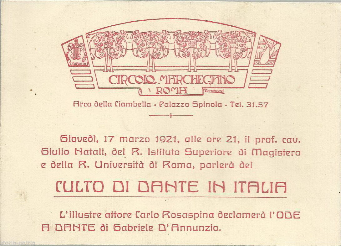 Marche, Circolo Marchigiano, Roma, Conferenza, Natali, Dannunzio, Dante, Rosaspina, 21