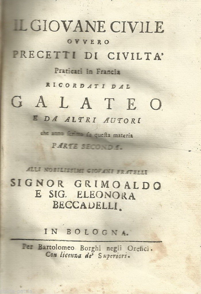 Galateo, Precetti Di Civilta, Antica Edzione Bolognese