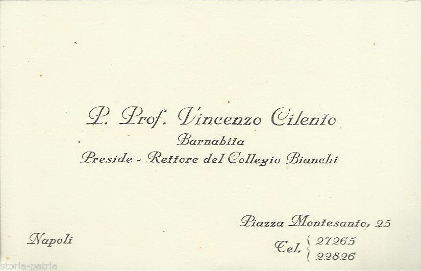 Napoli, Barnabiti, Collegio Bianchi, Vincenzo Cilento, Biglietto Da Visita, Antico