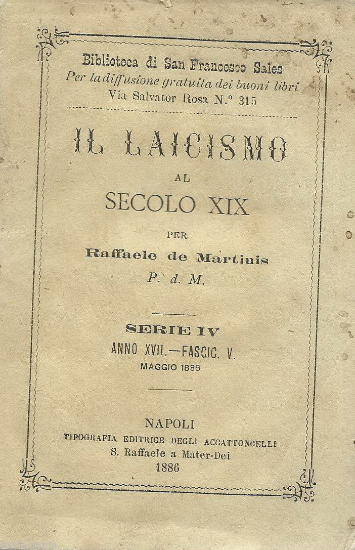 Napoli, De Martinis, Laicismo, Religione, Scuola, Insegnamento, Didattica, Morale, 1886