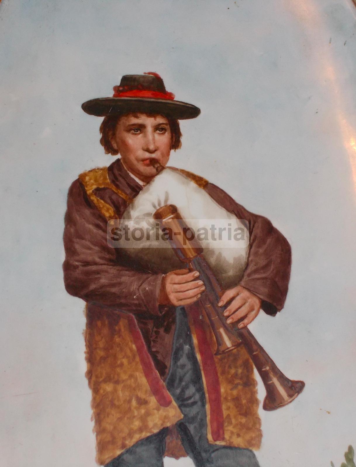 Folklore, Costumi Popolari, Arte, Musica, Cornamusa, Zampogna, Zampognaro, Raro Dipinto