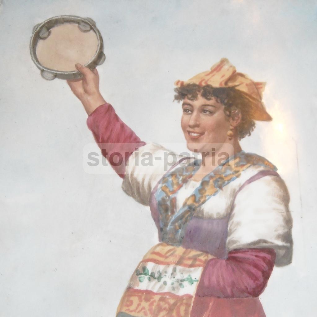 Folklore, Costumi Popolari, Arte, Musica, Danza, Ballo Con Tamburrello, Raro Dipinto