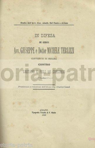 Puglia, Orsara, Irpinia, Ariano, Del Conte, Terlizzi, De Gregorio, Giuridica, Lanni, 1898