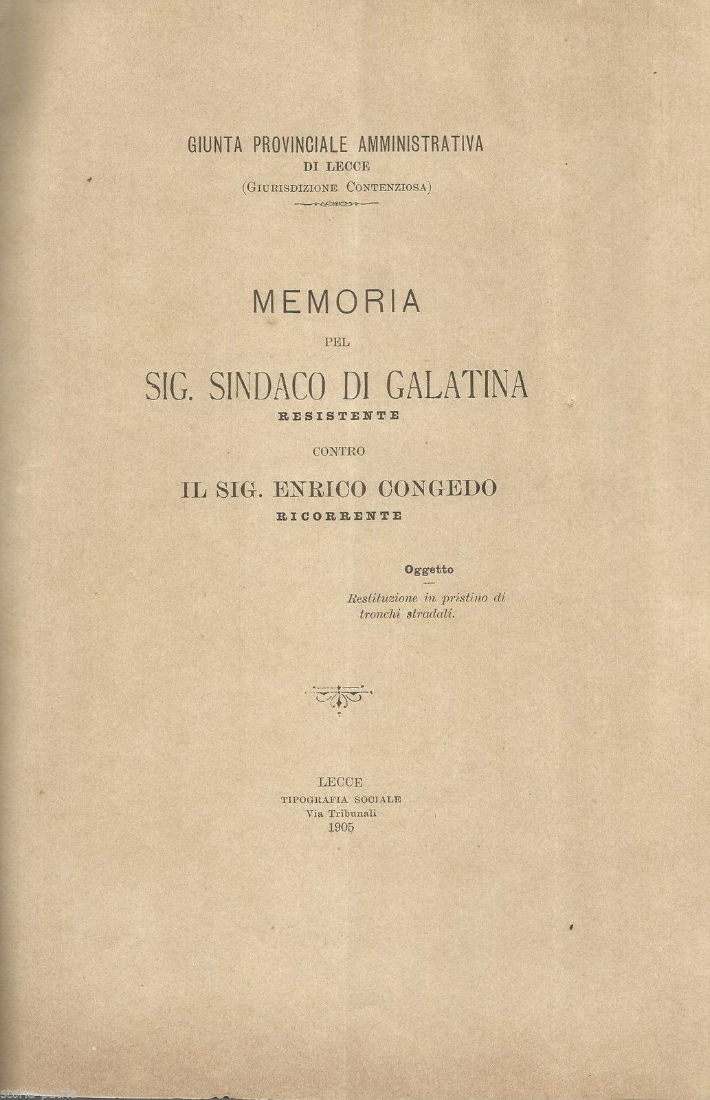 Puglia, Salento, Lecce, Galatina, Congedo, Giuridica, Antica Controversia, Manganaro