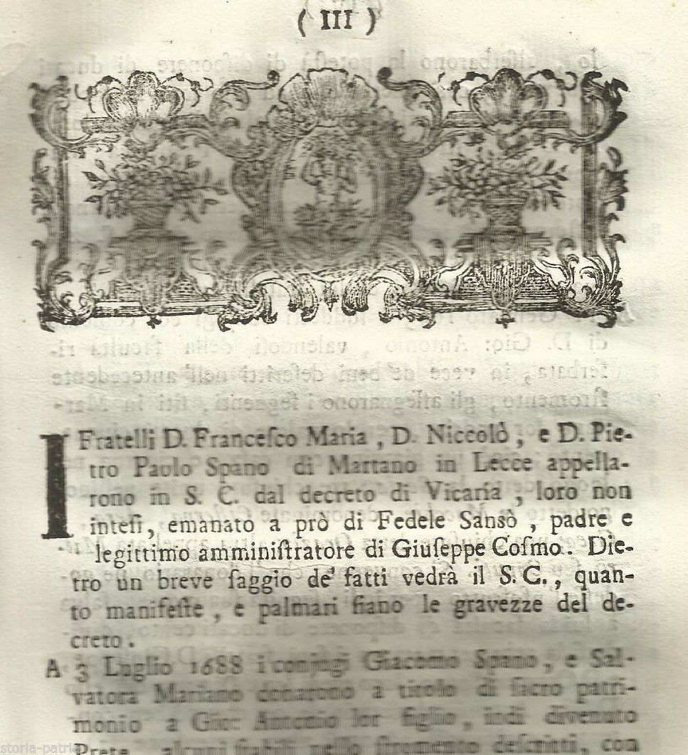 Puglia, Salento, Sogliano, Micheli, Giurisprudenza, Notariato, Antica Allegazione, 700