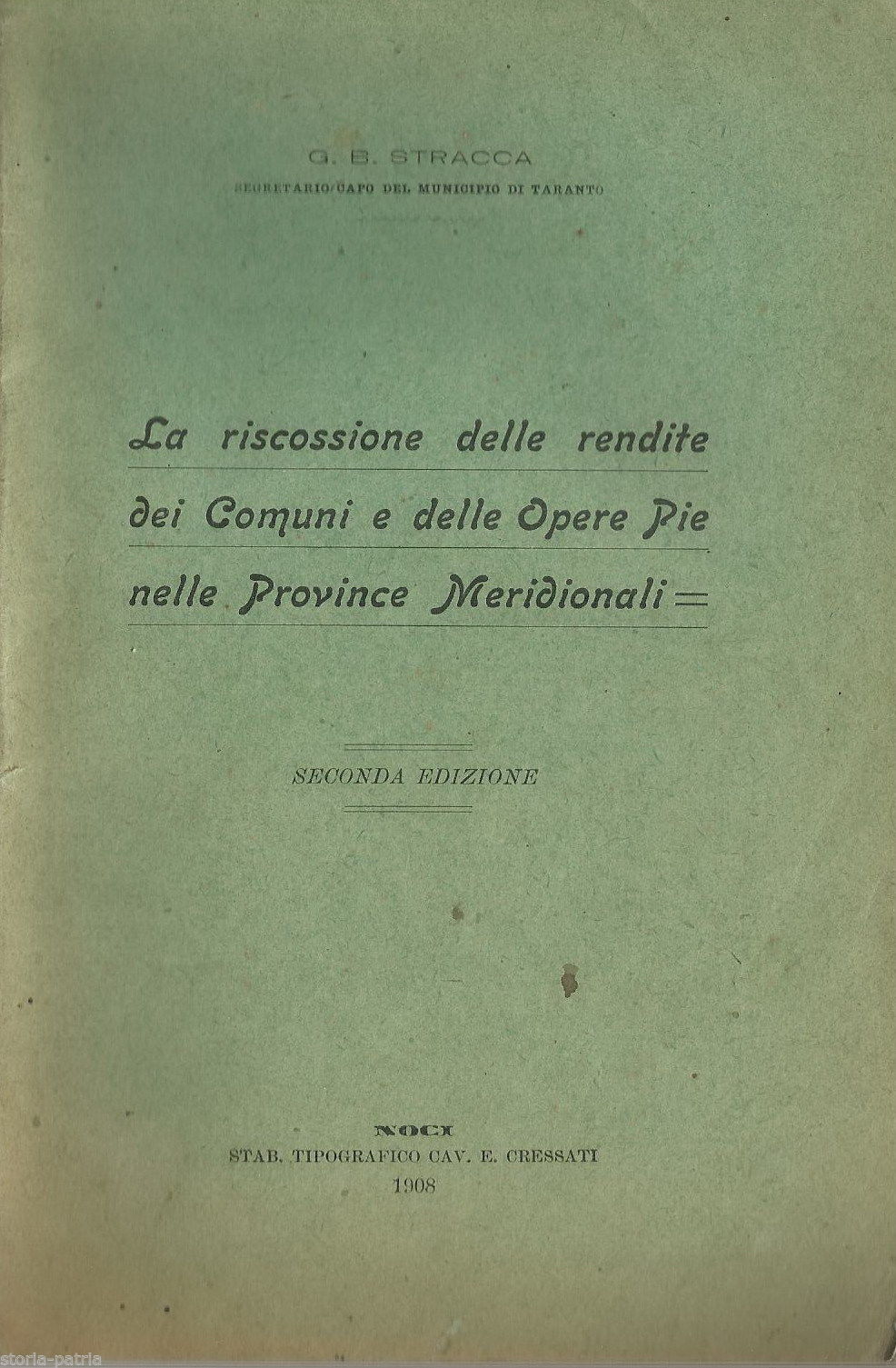 Puglia, Taranto, Noci, Stracca, Riscossione Rendite, Comuni, Opere Pie, Meridione, 1908