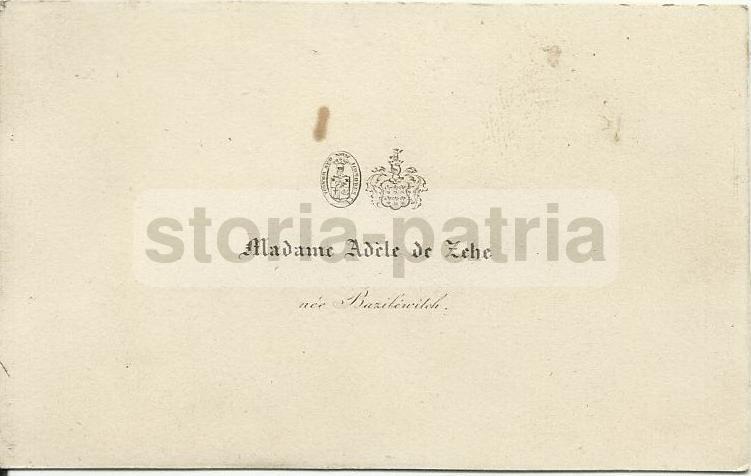 Araldica, Nobilta, Biglietto Da Visita, Madame Adele De Zehe, Da Collezione, Rarita
