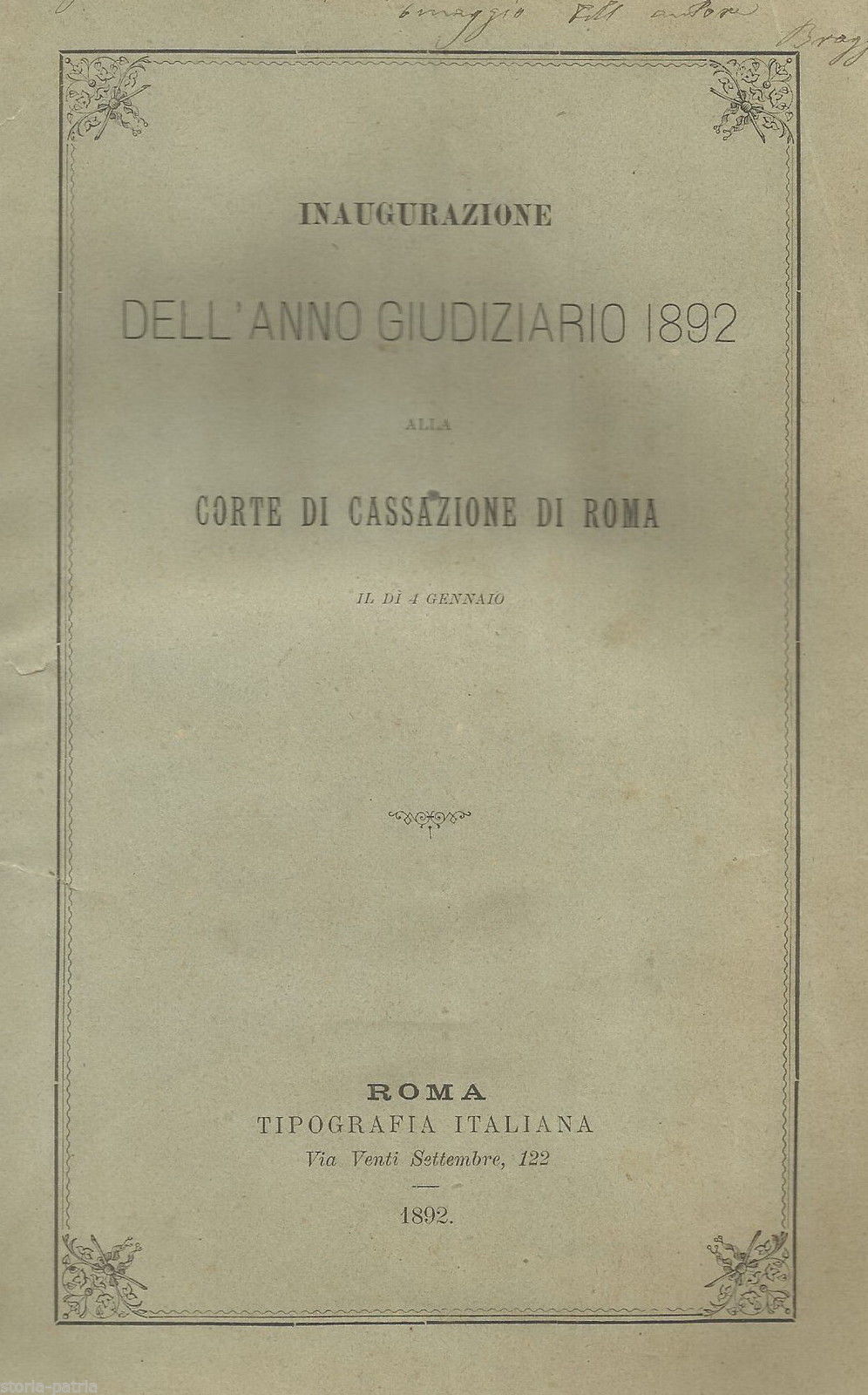 Roma, Cassazione, Anno Giudiziario 1892, Auriti, Broggi, Eula, Puppa, Pantanetti, Friuli