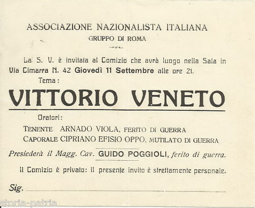 Roma, Militaria, Vittorio Veneto, Poggioli, Comizio, d'Epoca